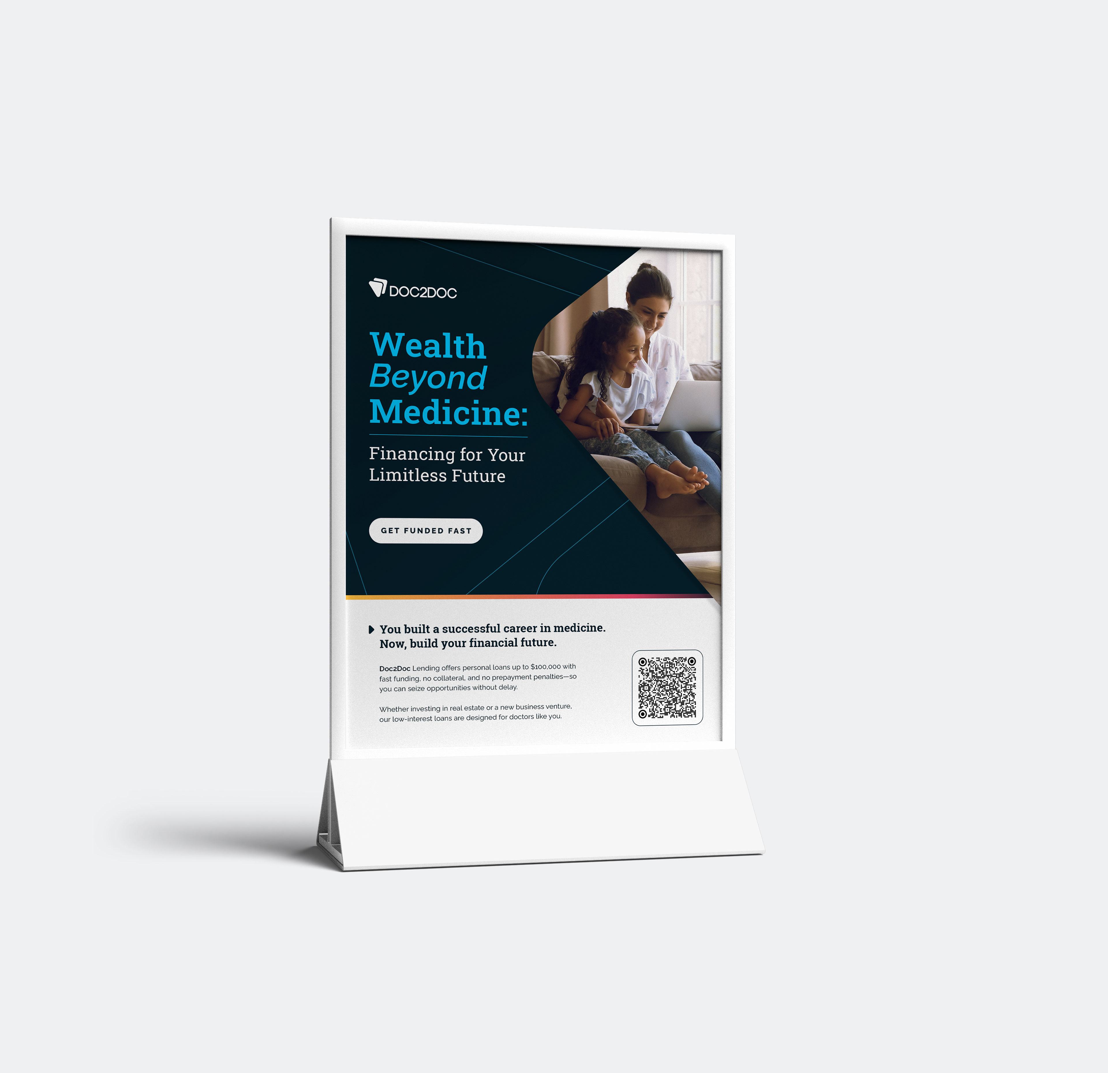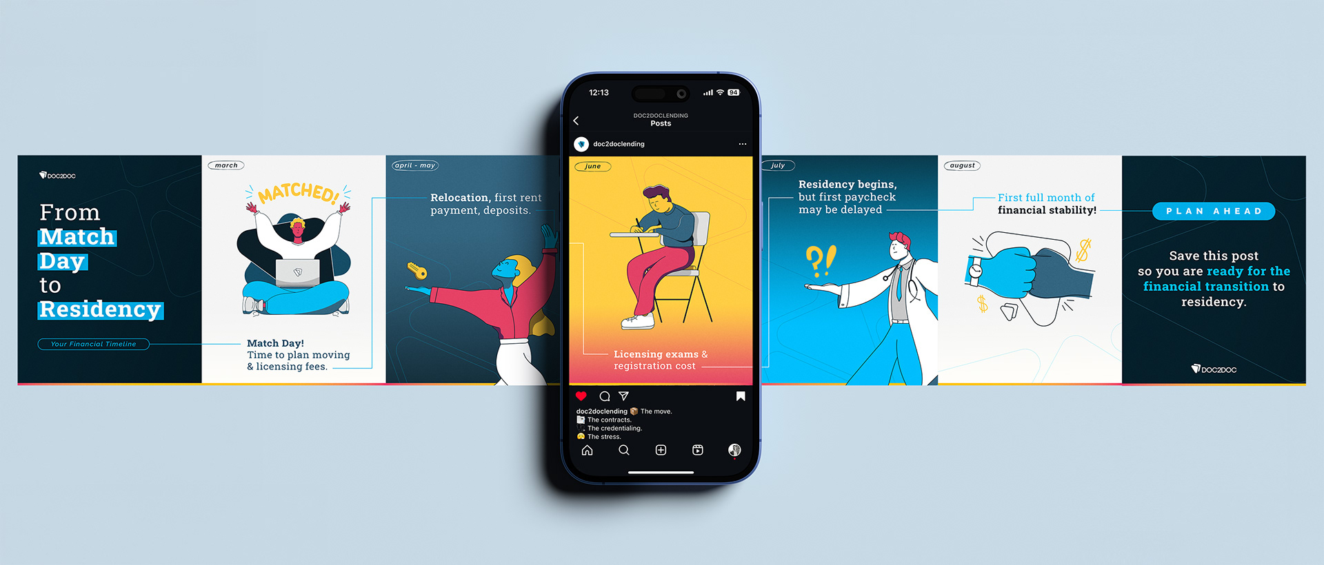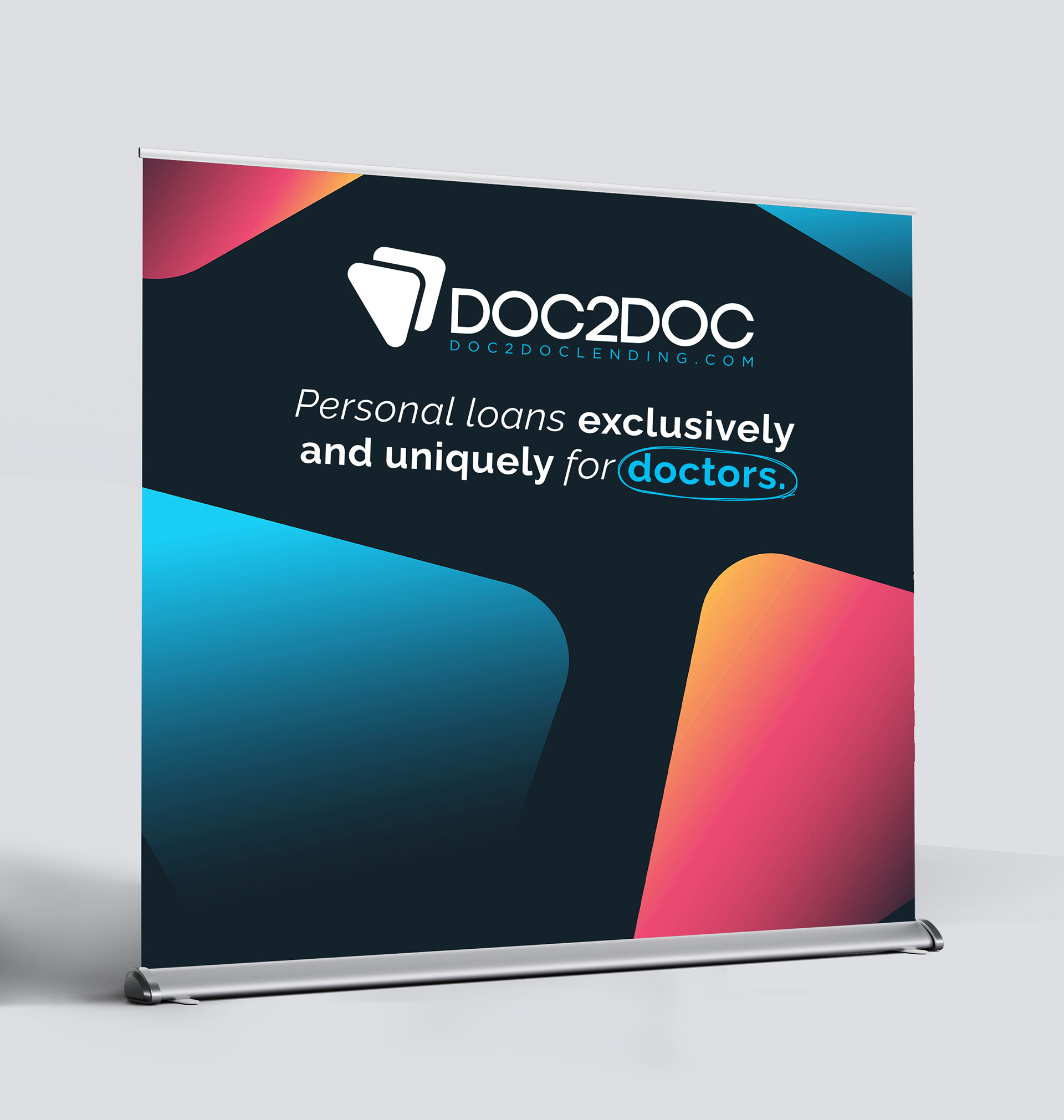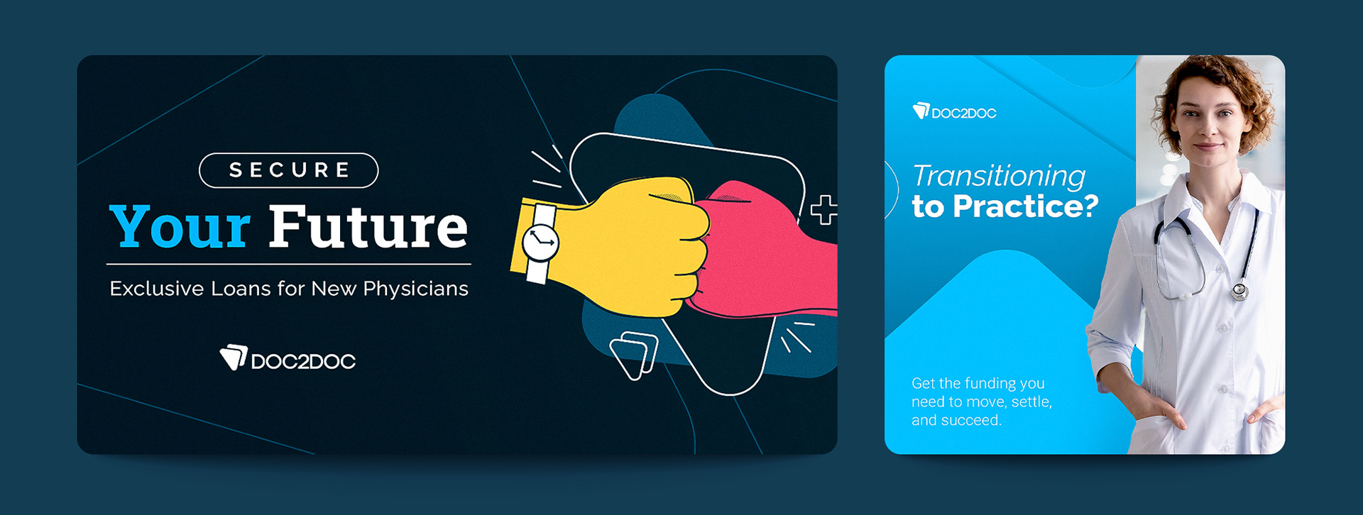 Doc2Doc is a financial lending company based in the United States. They specialize their tailor-made services specifically to aid doctors and medical professionals with financial stability during their careers, whether that be helping with relocation costs, advancing their practices, or focusing on a major, personal life change. I partnered with the Doc2Doc leadership to elevate and reshape the brand image across all touch points and platforms, including social impact, OOH, refreshed logos, icons, imagery, guidelines, as well as introducing animations and illustrations to humanize the brand in order to bring a greater sense of approachability.